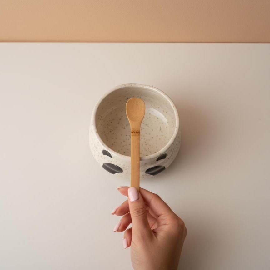 Start every morning with a smile with this irresistibly cute 4-piece panda ceramic matcha set — because every matcha ritual is better with a panda tea buddy by your side. The speckled cream glazed bowl (13.5 × 7 cm, 450ml) features adorable panda face details that are instantly smile-worthy and completely one-of-a-kind, paired with a smooth glazed interior for effortless whisking and easy cleaning — playful, cozy, and charming enough to leave permanently on display in any kitchen or tea corner. Comes complete with a 100-prong bamboo whisk / chasen (6 × 11.5 cm), ceramic whisk holder (6 × 2.36 cm), and bamboo scoop / chashaku (18 cm) — everything you need to brew a perfect bowl of matcha at home. The ultimate gift for matcha lovers, panda fans, kawaii aesthetic enthusiasts, and anyone who believes their morning ritual should bring as much joy as a cup of perfectly whisked matcha. Ships fast from the US — order yours today. ✨